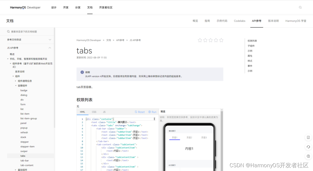 文档访问链接:https://developer.harmonyos.com/cn/docs/documentation/doc-references/js-components-container-tabs-0000001281480666