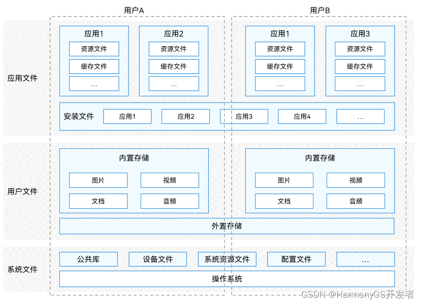 文件管理,根据不同的文件类型,为开发者提供对应的开发指导。按所有者的不同,分为应用文件、用户文件和系统文件;按文件存储的位置不同,分为本地文件和分布式文件。
