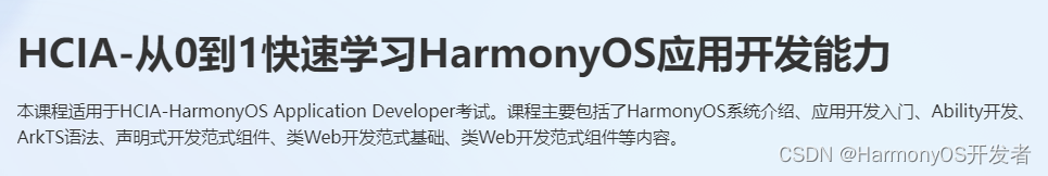 - HCIA:一小时快速入门HarmonyOS应用开发: