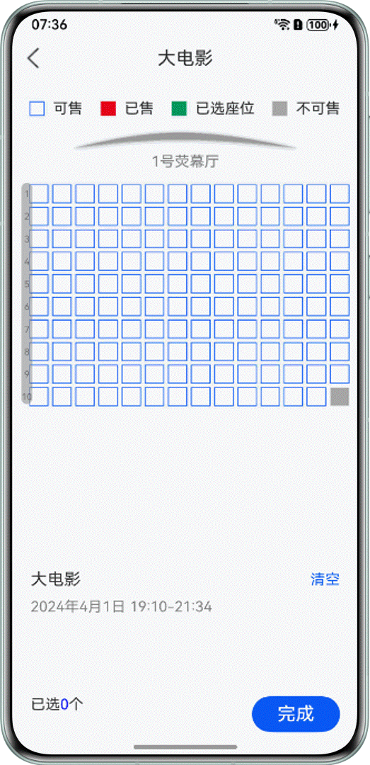 电影选座是便捷生活类应用中的典型场景之一,如用户在购票选座时,会点击、取消以及确认选座。