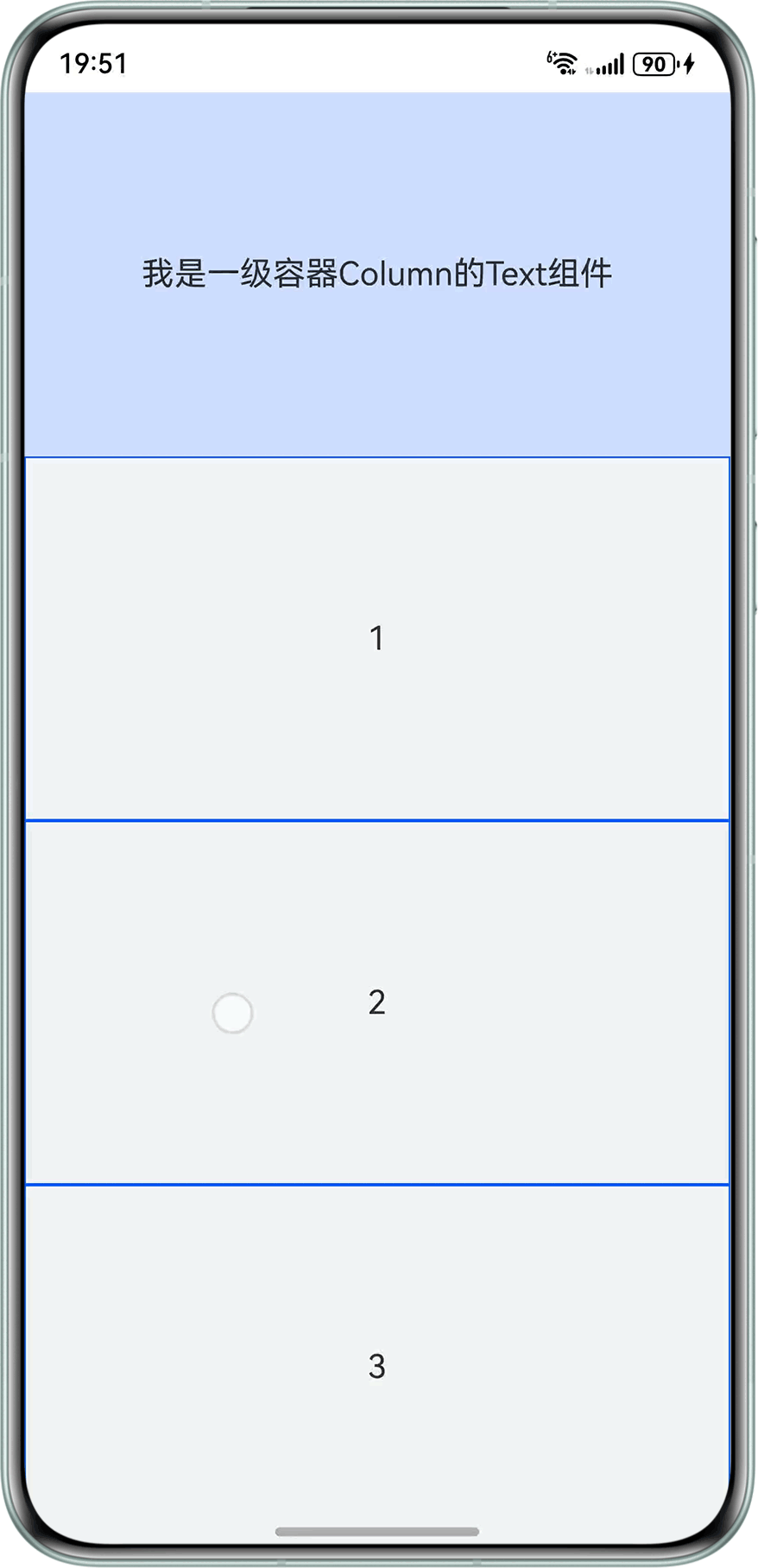 build() { Flex({ wrap: FlexWrap.NoWrap, alignItems: ItemAlign.Center, direction: FlexDirection.Column }) { Text('我是一级容器Column的Text组件') List() { // ... } } .height('100%') .width('100%') }