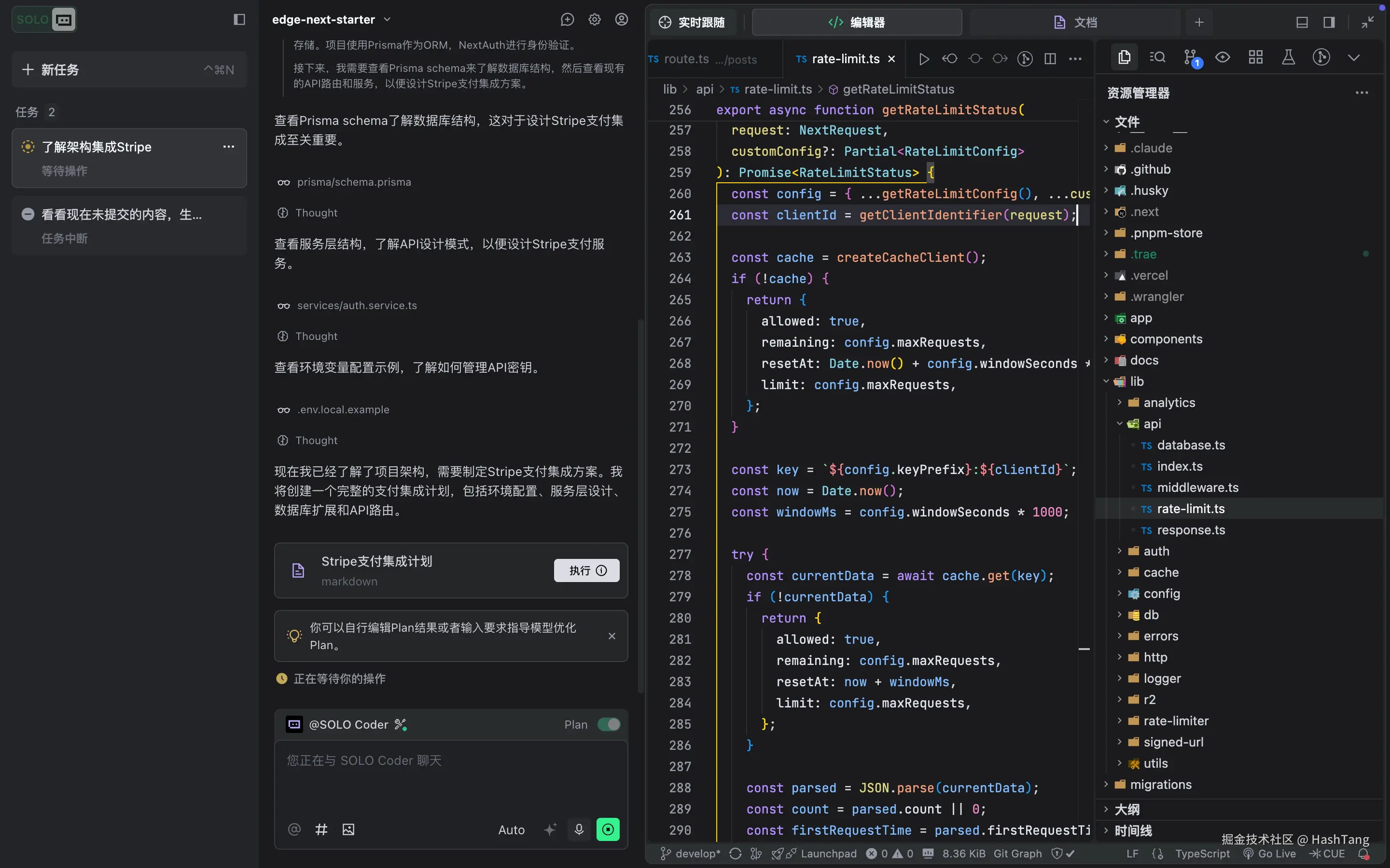 以前写一个带鉴权的 API,我得手搓 40 分钟。现在用 Claude Code 或者 TRAE 的 SOLO 模式,也就是两三句话的事: