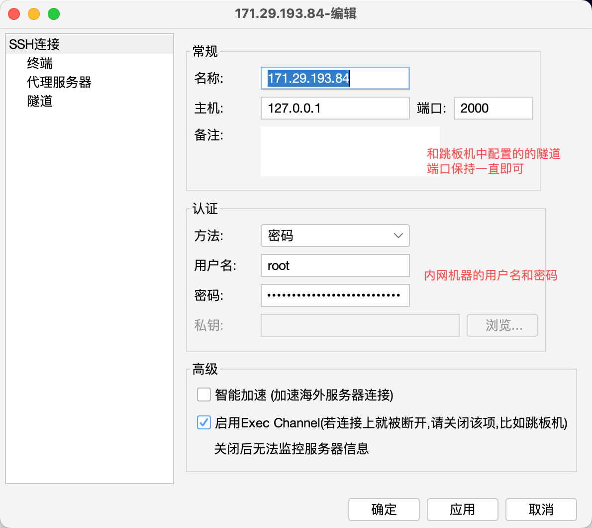 配置完成,此时链接步骤,先打开跳板机连接,在访问目标机器
