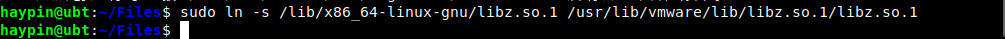 sudo ln -s /lib/x86_64-linux-gnu/libz.so.1 /usr/lib/vmware/lib/libz.so.1/libz.so.1