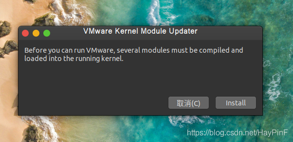 情况:更新ubuntu的linux内核后启动VMware-workstation15.5.1弹窗: