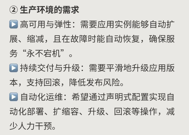 4、声明式配置:Kubernetes 使用声明式配置,用户通过定义期望的最终状态,Kubernetes 会自动将系统的实际状态转变为期望状态。