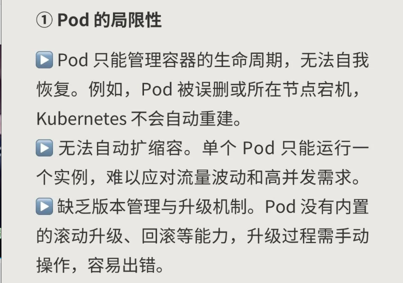 回滚:如果新版本的应用出现问题,Deployment 控制器允许你回滚到之前的版本。