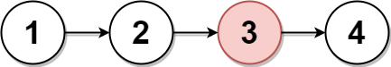 输入:head = [1,2,3,4] 输出:[1,2,4] 解释: 上图表示给出的链表。 对于 n = 4 ,值为 3 的节点 2 是中间节点,用红色标注。