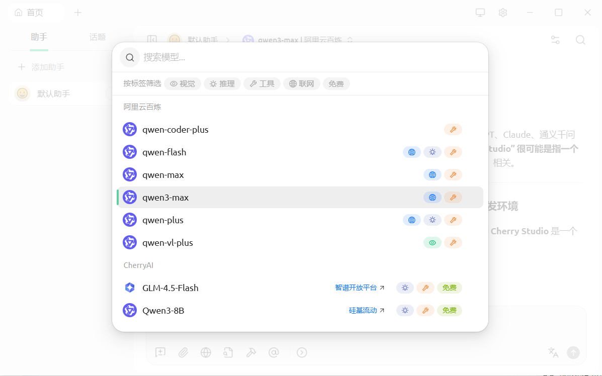 选择具体大模型问答使用