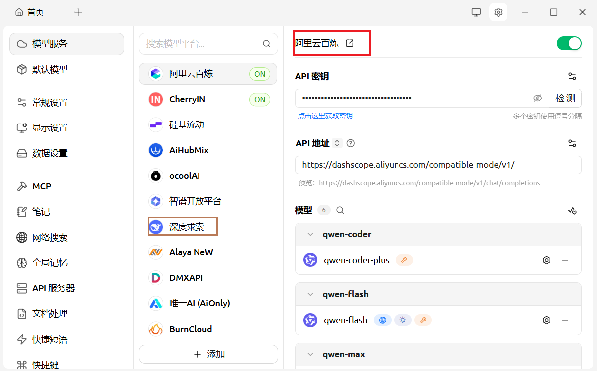 配置使用连接大模型厂商