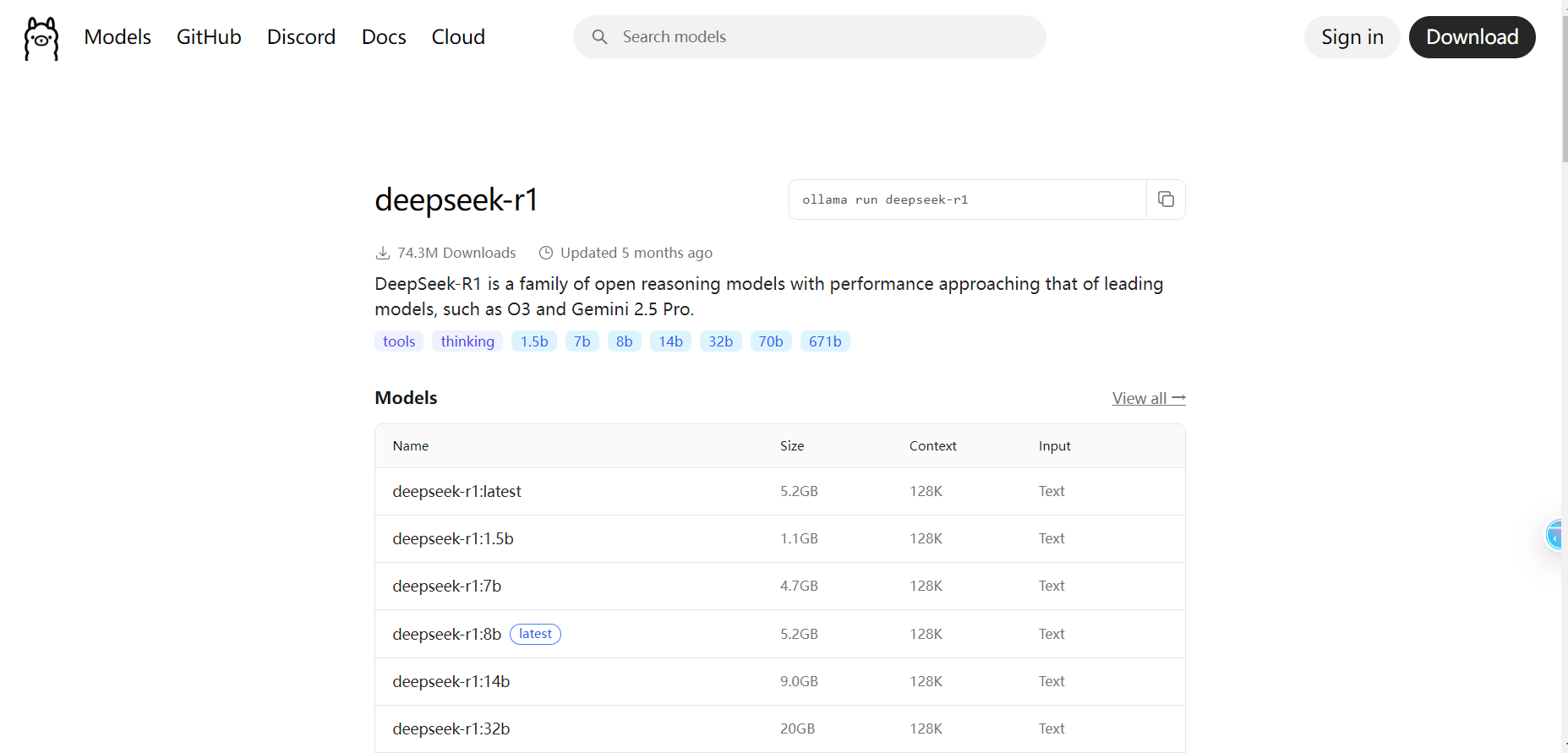 搜索选择对应的大模型,根据机器规格选择合适的大模型