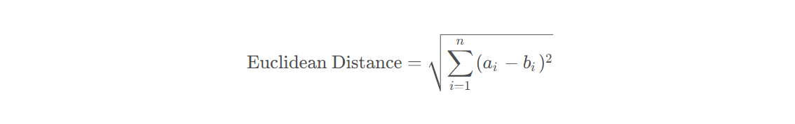 d = \sqrt{\sum_{i=1}^{n} (a_i - b_i)^2}d=∑i=1n(ai−bi)2