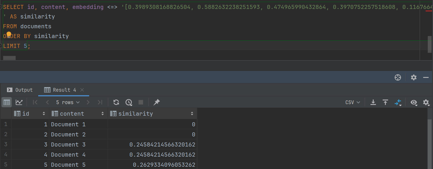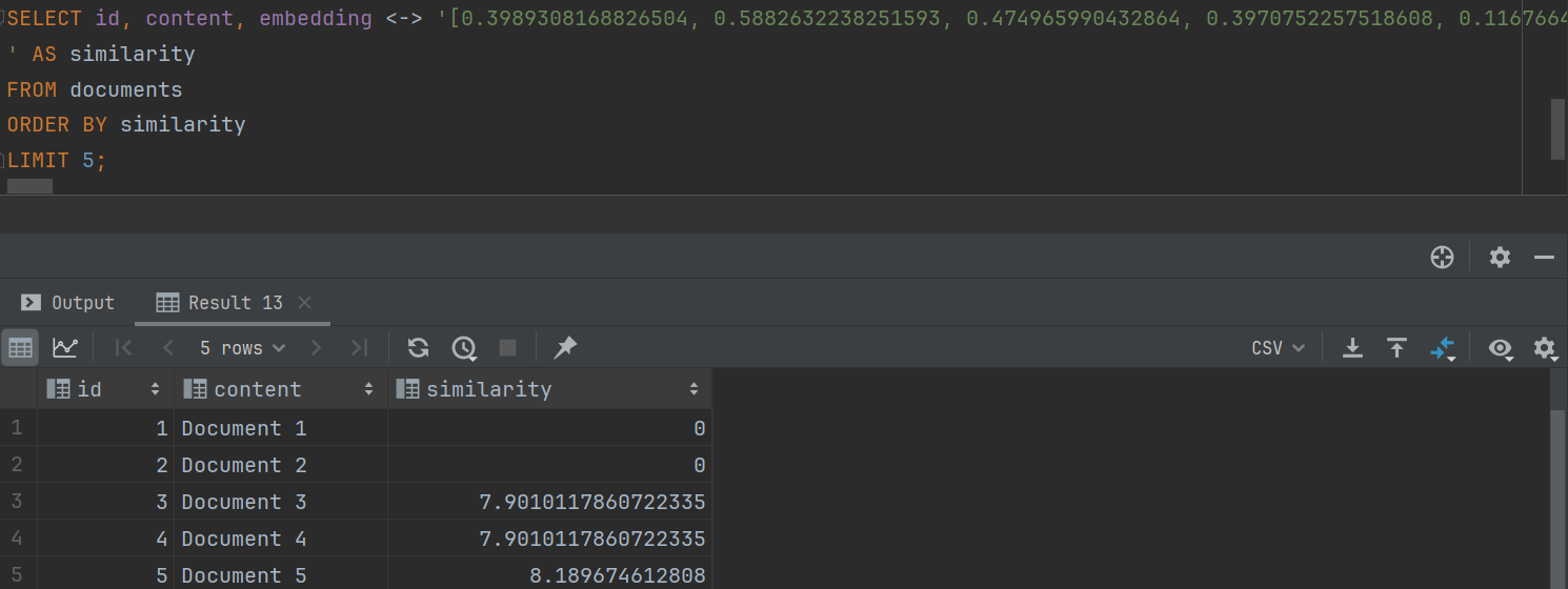<->运算符(适用于未归一化向量)- 余弦相似度:使用