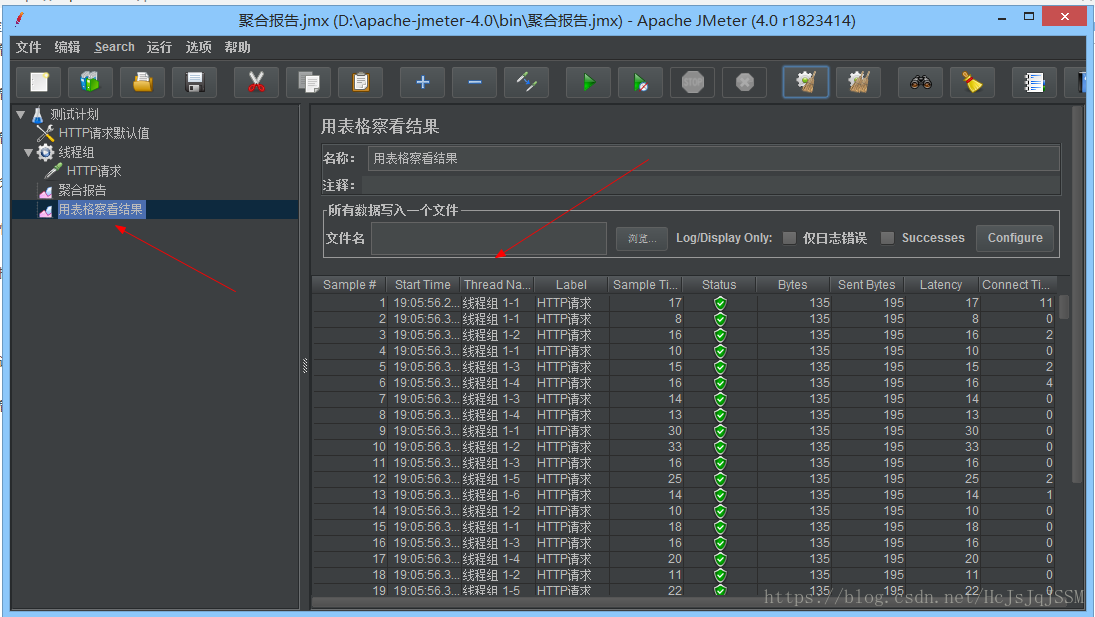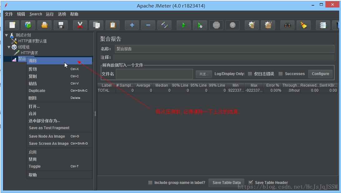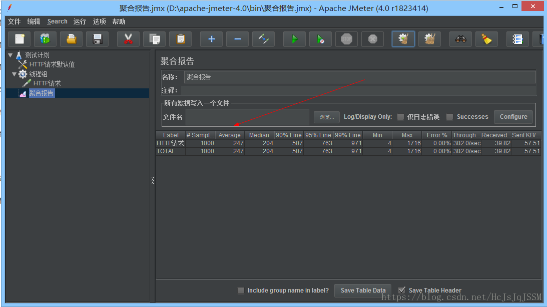 聚合报告压测结果.(聚合报告的时间单位是毫秒的.)