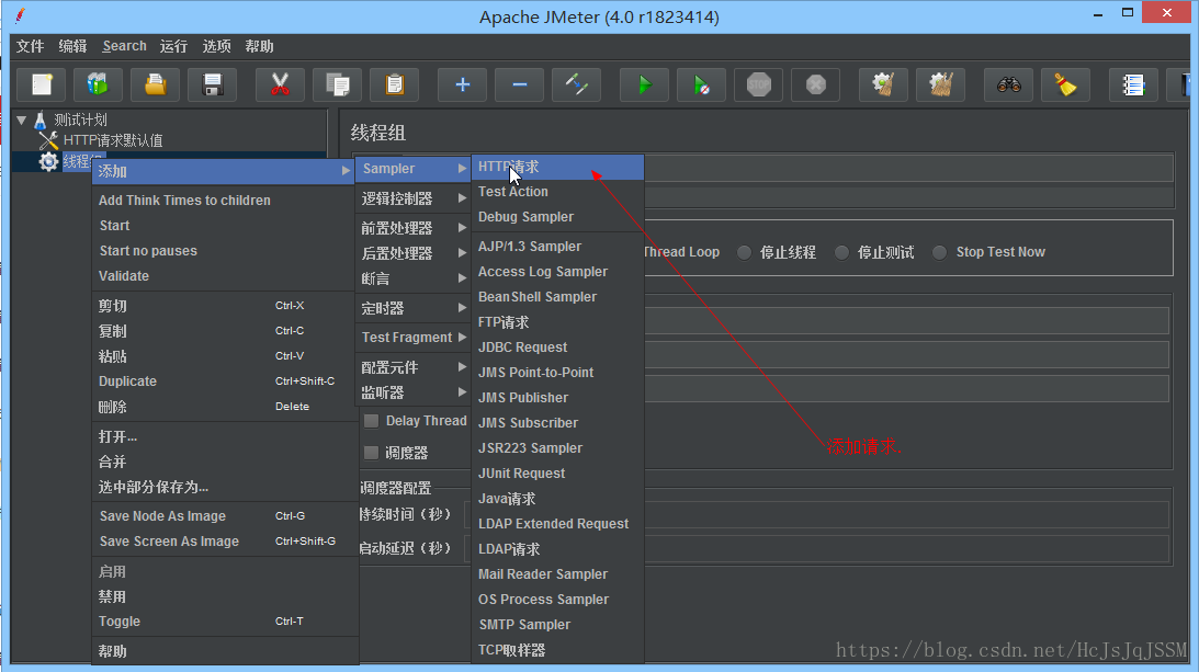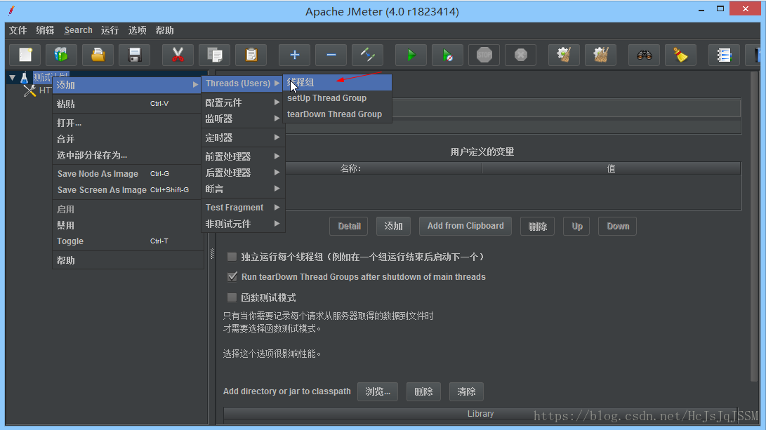 5.3 添加线程组(并发测试的原理就是使用多线程用户模拟多用户的请求).