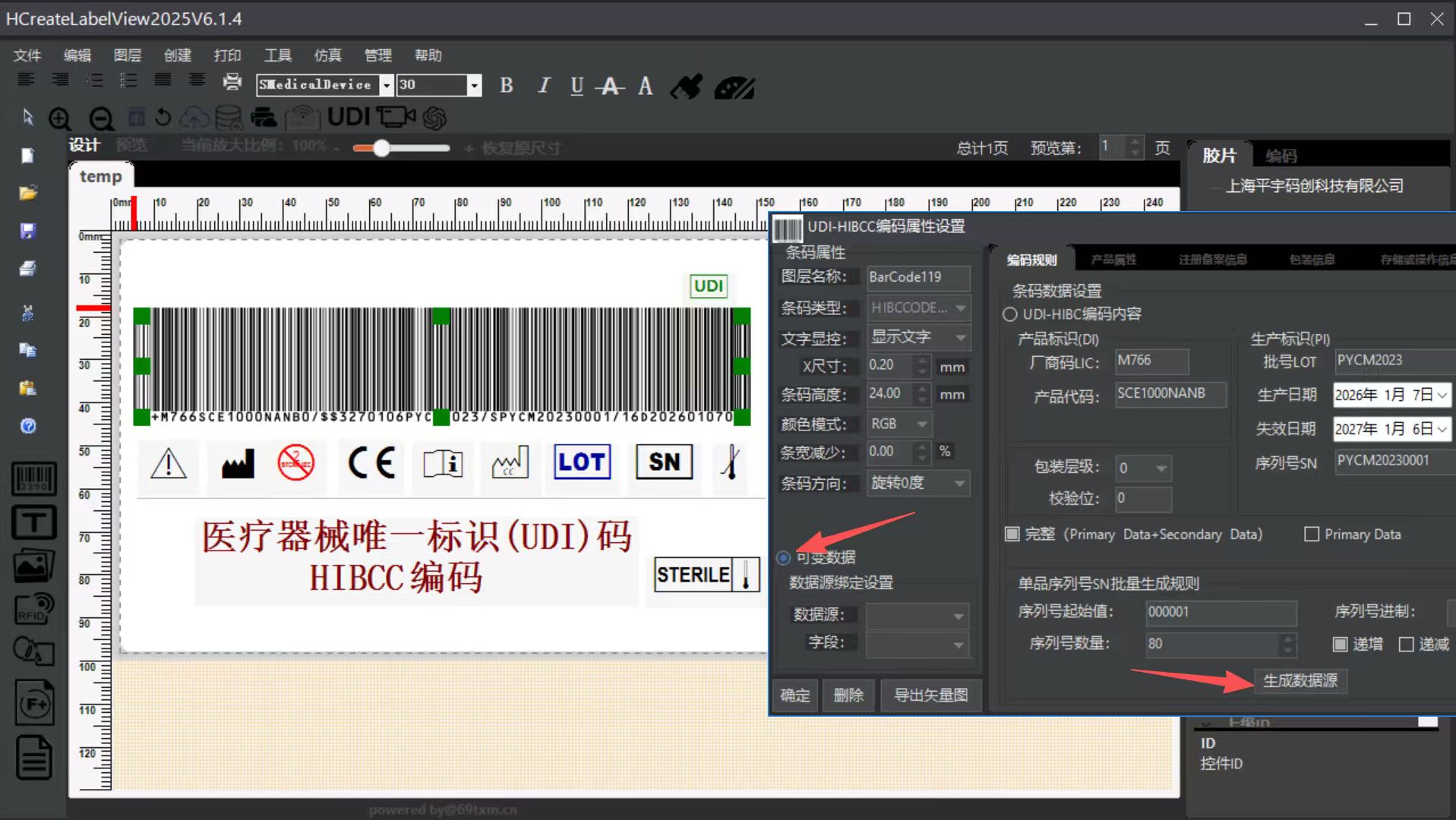 5.打印或者导出可变数据HIBCC码