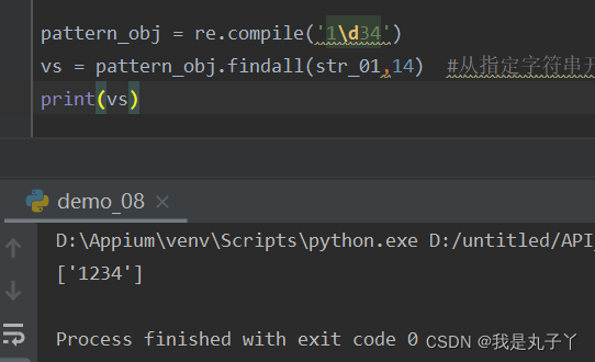 pattern_obj = re.compile('1234') #创建pattern对象 '1234'正则表达式