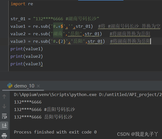 value3 = re.sub('#.{2}','岳阳',str_01) #将湖南替换为岳阳