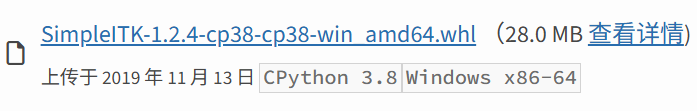 打开浏览器访问:🔗 https://pypi.org/project/SimpleITK/1.2.4/#files