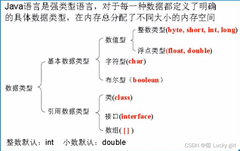 整数型:byte 1个字节;short 2个字节;int 4个字节;long 8个字节
