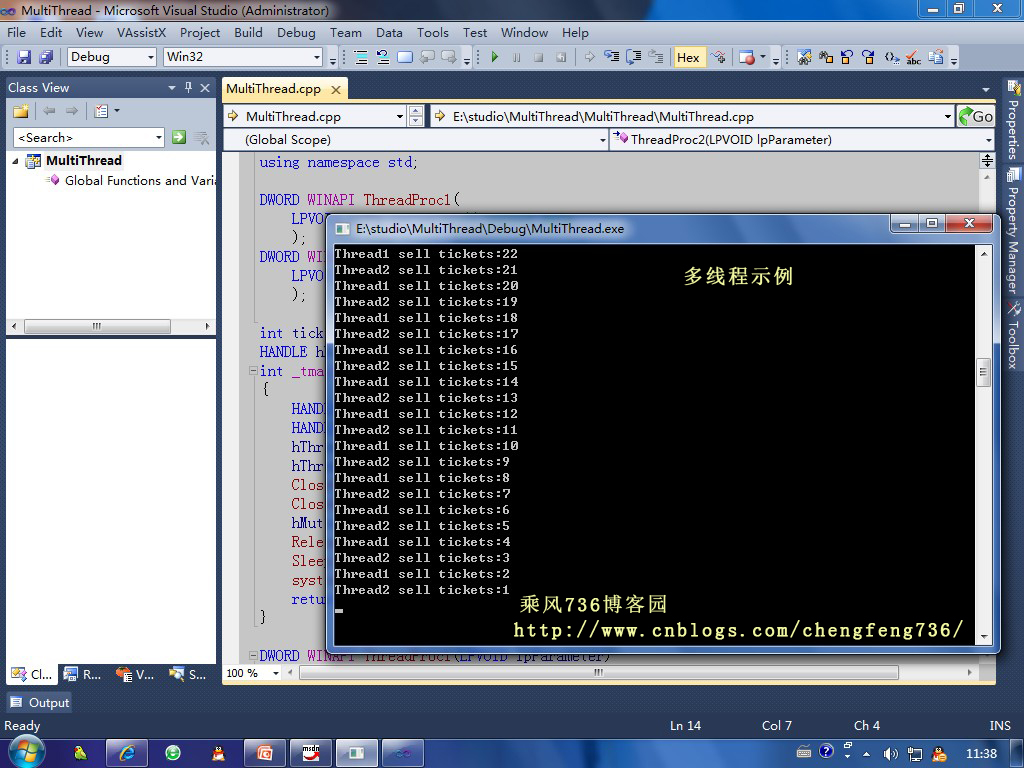 下面通过一个火车售票系统的简化模型来具体实现多线程技术的应用: