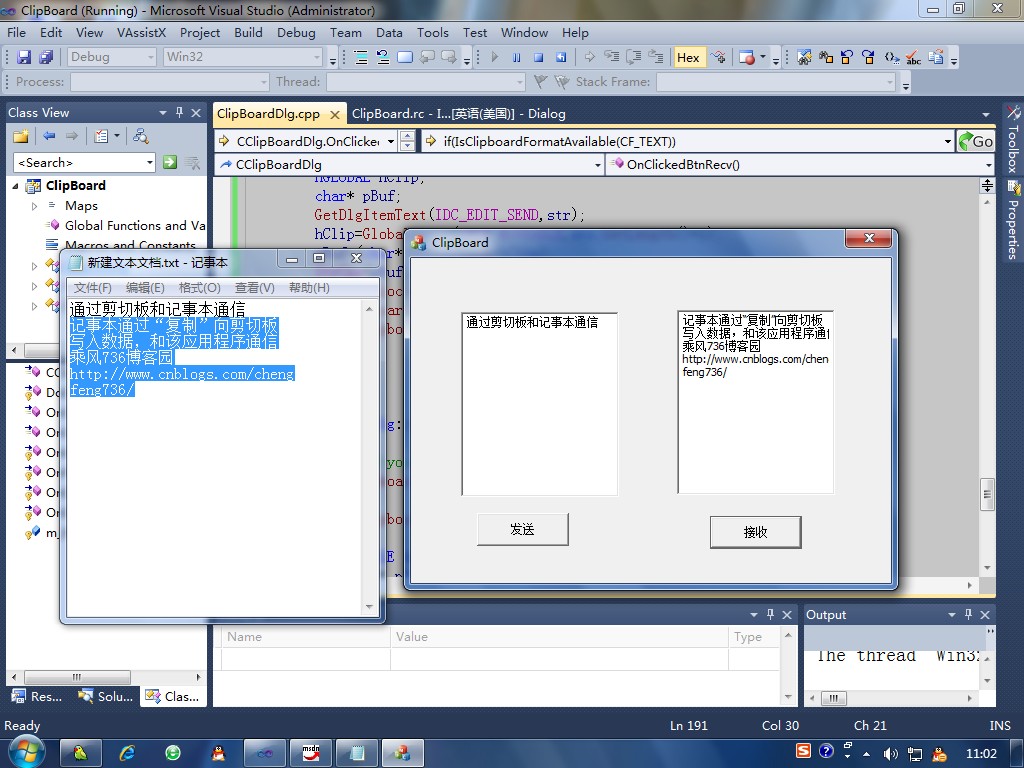 剪贴板是操作系统系统维护的一块内存区域,本地主机的任何进程都可以访问剪贴板,因此通过剪贴板这个中介本地主机的各进程之间就可以方便的通信。通过剪贴板进行进程间的通信,可用过下面的步骤实现: