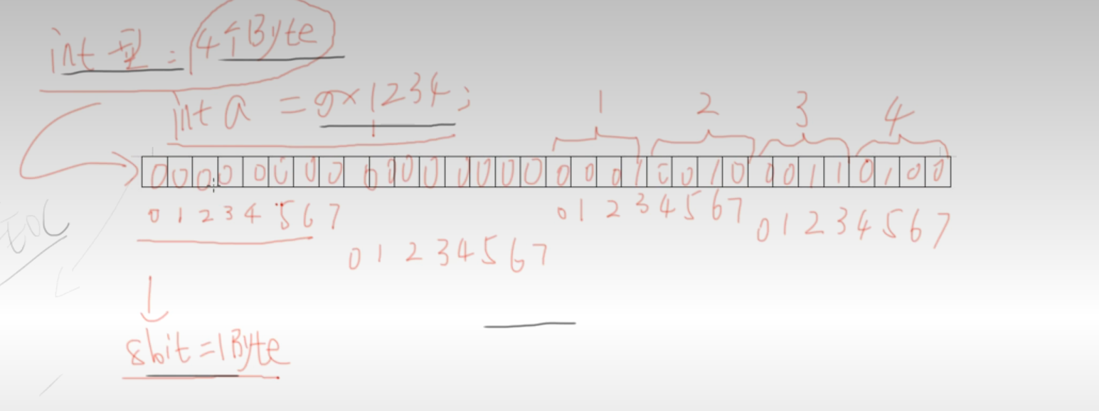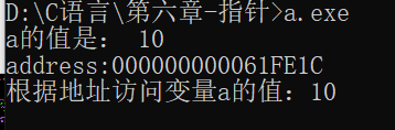 提及一个概念:取值运算符*会根据指针类型来进行取值,int型在内存空间中占4个字节(32位),char占1个字节(8位),而a定义的值是16进制的:因此该值需要16位来进行存储(补充:16进制的数在内存中需要四位来进行存储):示意图: