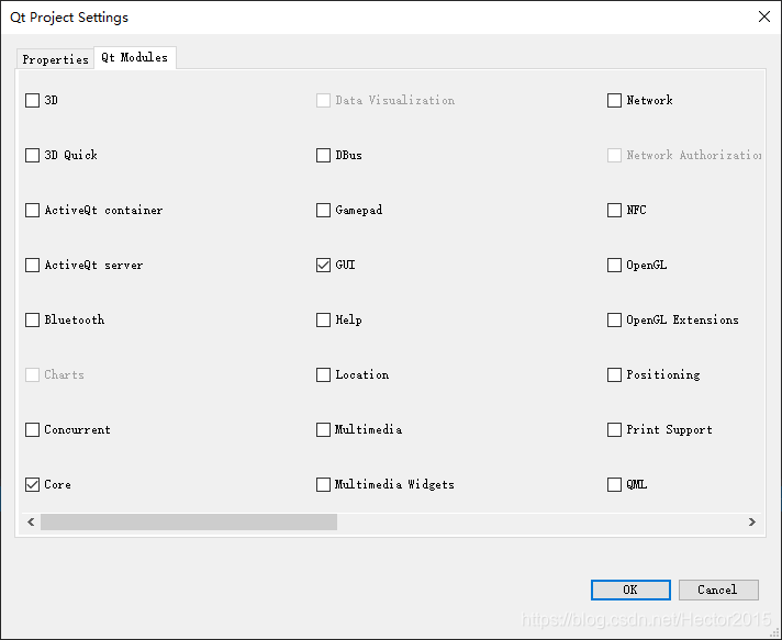 3、工具包更新后,编译出现找不到Qt头文件的路径, fatal error C1083: 无法打开包括文件: “QWidget”: No such file or directory,查看工程属性的头文件依赖已经添加,最终发现Qt Vs Tools下的Qt Project Settings是置灰的,此工程当前识别为非vs+Qt的工程,此时需要将项目转化成QT+vs项目,右键菜单后有方法可以转化,convert project to Qt VS Tools project,此时发现Qt project Settings已经可以操作,将工程中使用到的模块在Qt Module中勾选即可,详情见下图