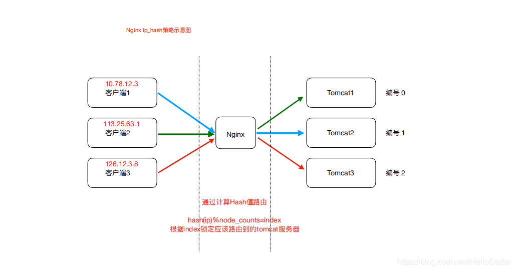 解决方案: 如果使用哈希算法,事情就简单很多,我们可以对ip地址或者sessionId进行计算哈希值,哈希值与服务器数量进行取模运算,得到的值就是当前请求应该被路由到的服务器编号,如此,同一个客户端ip发送过来的请求就可以路由到同一个目标服务器,实现会话粘滞。