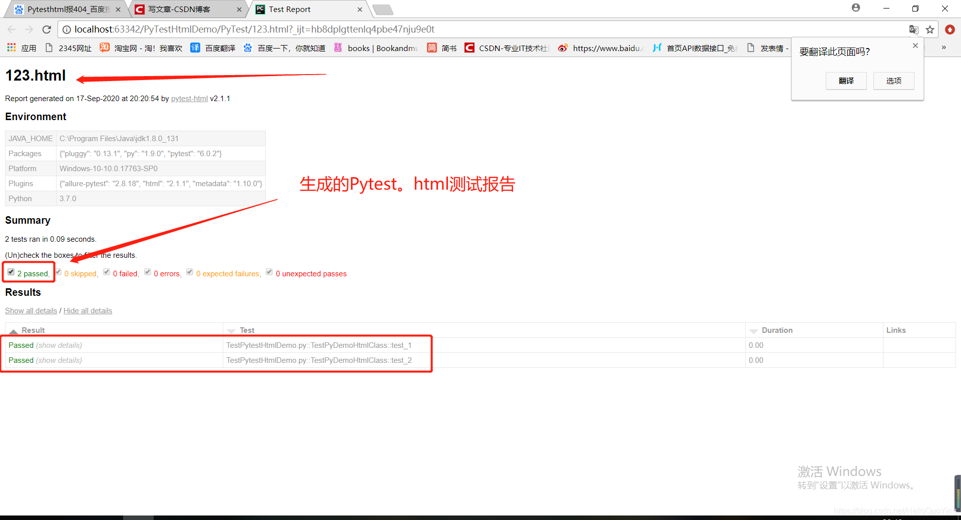 需要安装pytest和pytest-html(生成html测试报告)