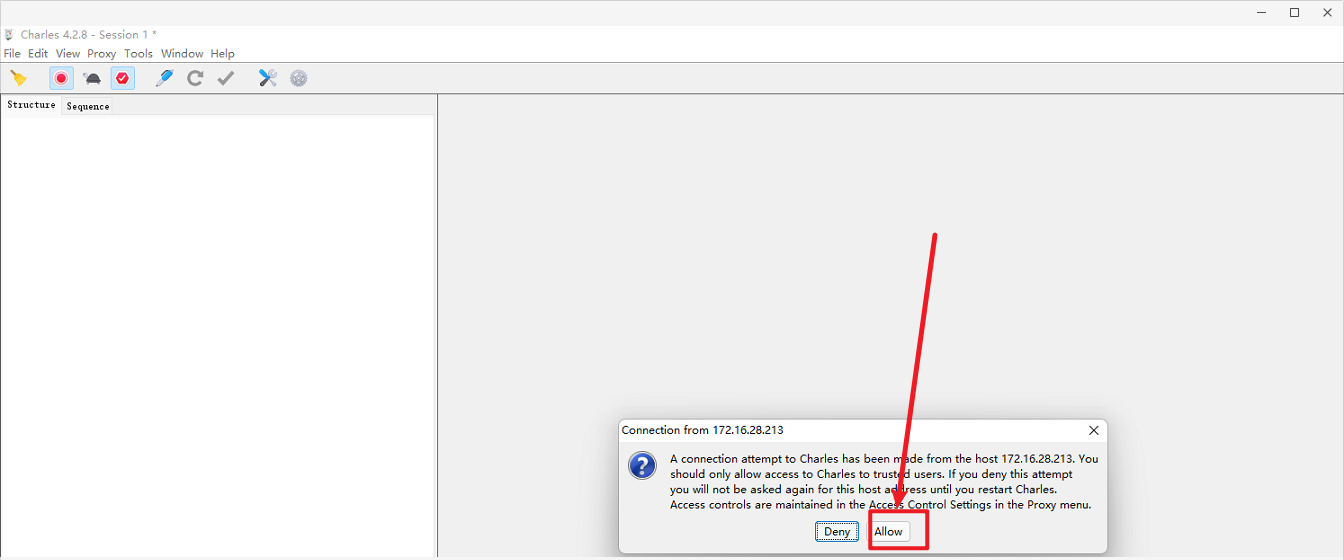 七、关闭手机wifi重新打开!!!!注意电脑端的Charles会有弹框!!!点击Allow!!!!!!就成功了
