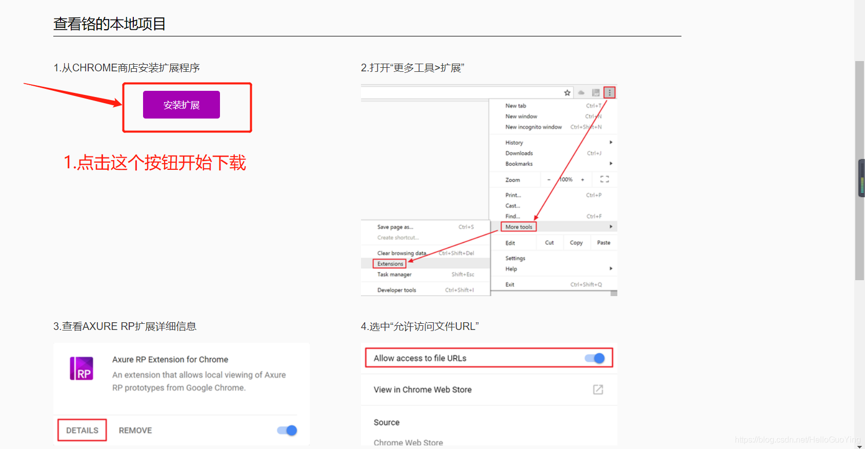 博客介绍了在谷歌浏览器中打开HTML文件进行预览的方法。当双击HTML文件无法正常预览时,是因为未下载Axure RP插件。需从CHROME商店安装扩展程序,依次进行打开扩展程序、查看扩展详情、选中允许访问文件URL、点击按钮等操作,之后即可正常预览。