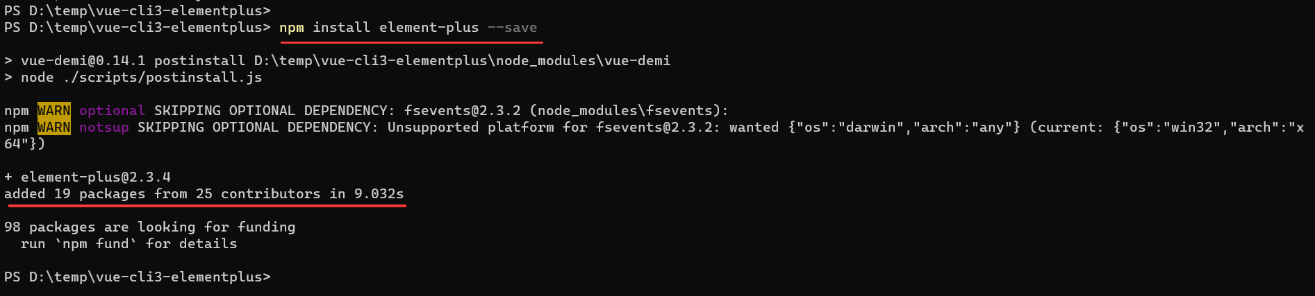 说明:element-ui是基于Vue2.0的,Vue3安装的是element-plus
