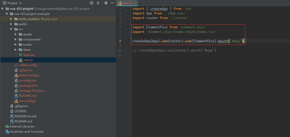 createApp(App).use(router).use(ElementPlus).mount('#app')