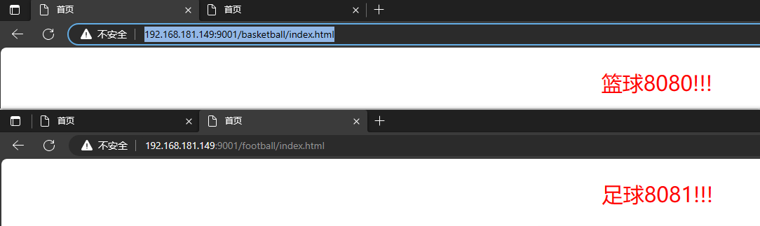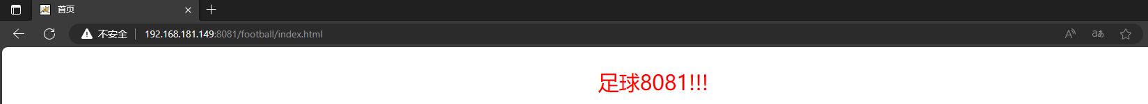浏览器网页中访问http://${Linux服务器的IP}:9001/football/index.html,浏览器中打印"足球8081!!!";