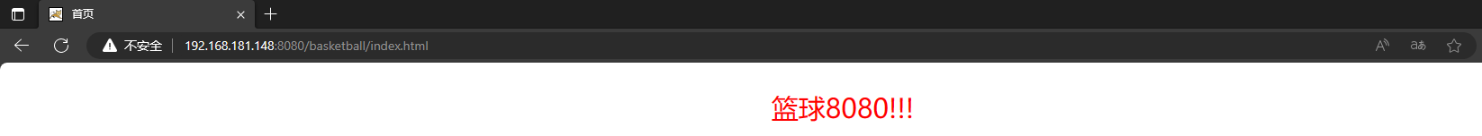 浏览器网页中访问http://${Linux服务器的IP}:9001/basketball/index.html,浏览器中打印"篮球8080!!!";