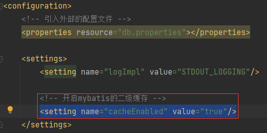 第一步:在mybatis的全局配置文件中开启二级缓存