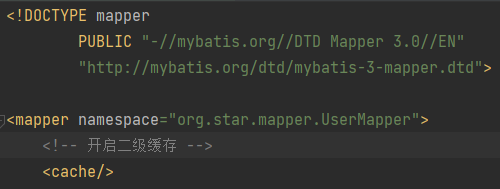 第二步:在Mapper接口上添加注解 @CacheNamespace 或者 在xxxMapper.xml中使用<cache/>标签开启二级缓存(坑:只能二选一,不能同时配置)