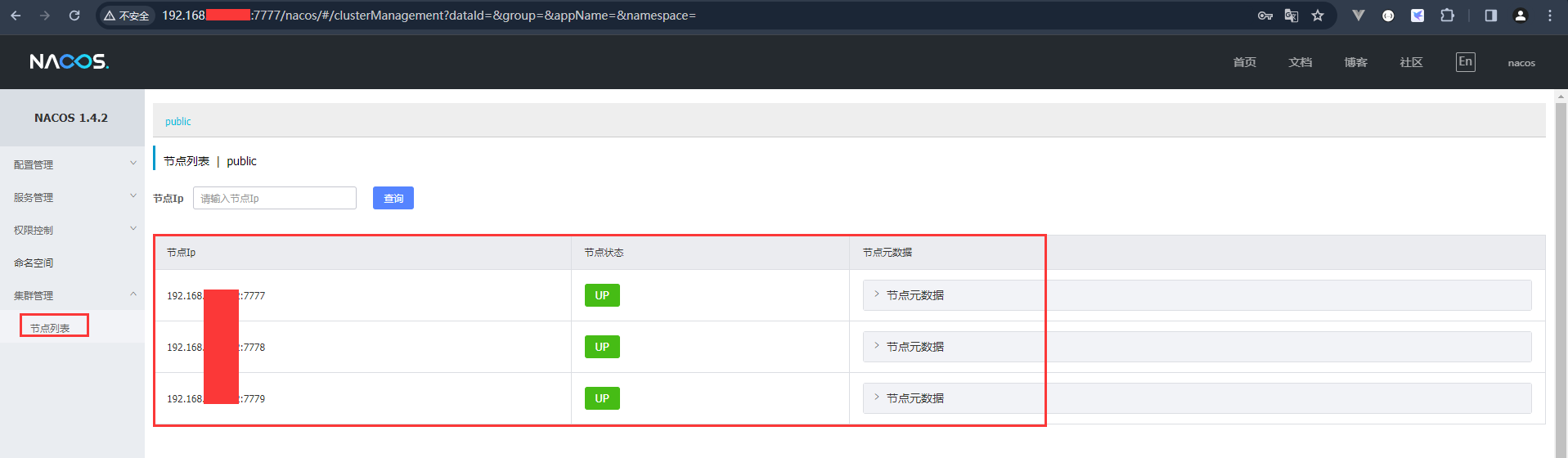 说明:此处的xxx为你的Nginx所在服务的IP地址,本集群搭建我的Nginx和nacos在同一台机器,如果不在同一台机器,修改为真实IP即可。