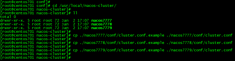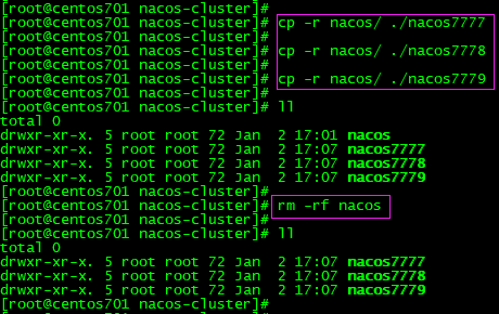 (2)拷贝3份,并重命名nacos7777、nacos7778、nacos7779,然后删除nacos文件夹