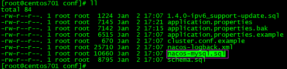 (3)创建nacos数据库,并初始表,sql脚本在 /usr/local/nacos-cluster/nacos7777/conf/nacos-mysql.sql
