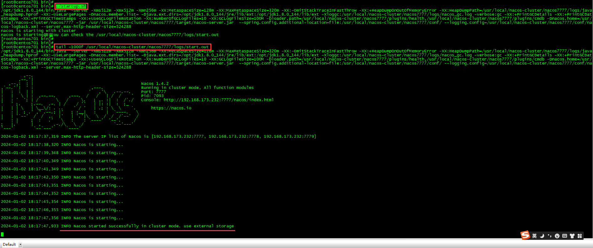 tail -1000f /usr/local/nacos-cluster/nacos7777/logs/start.out