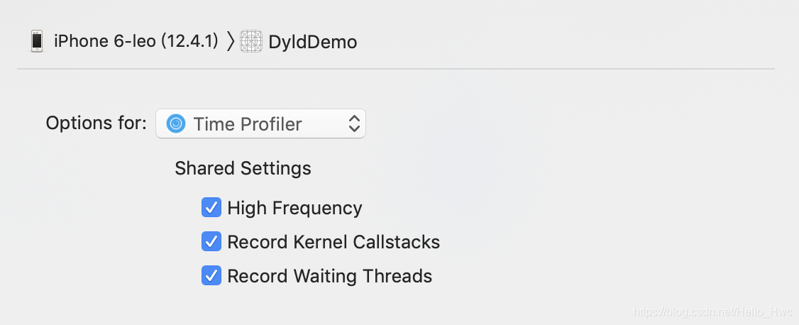 Time Profiler中的看到的时间,并不是代码实际执行的时间,而是栈在采样统计中出现的时间。另外,Time Profiler还有一些配置是容易忽略的,依次点击File -> Recording Options: