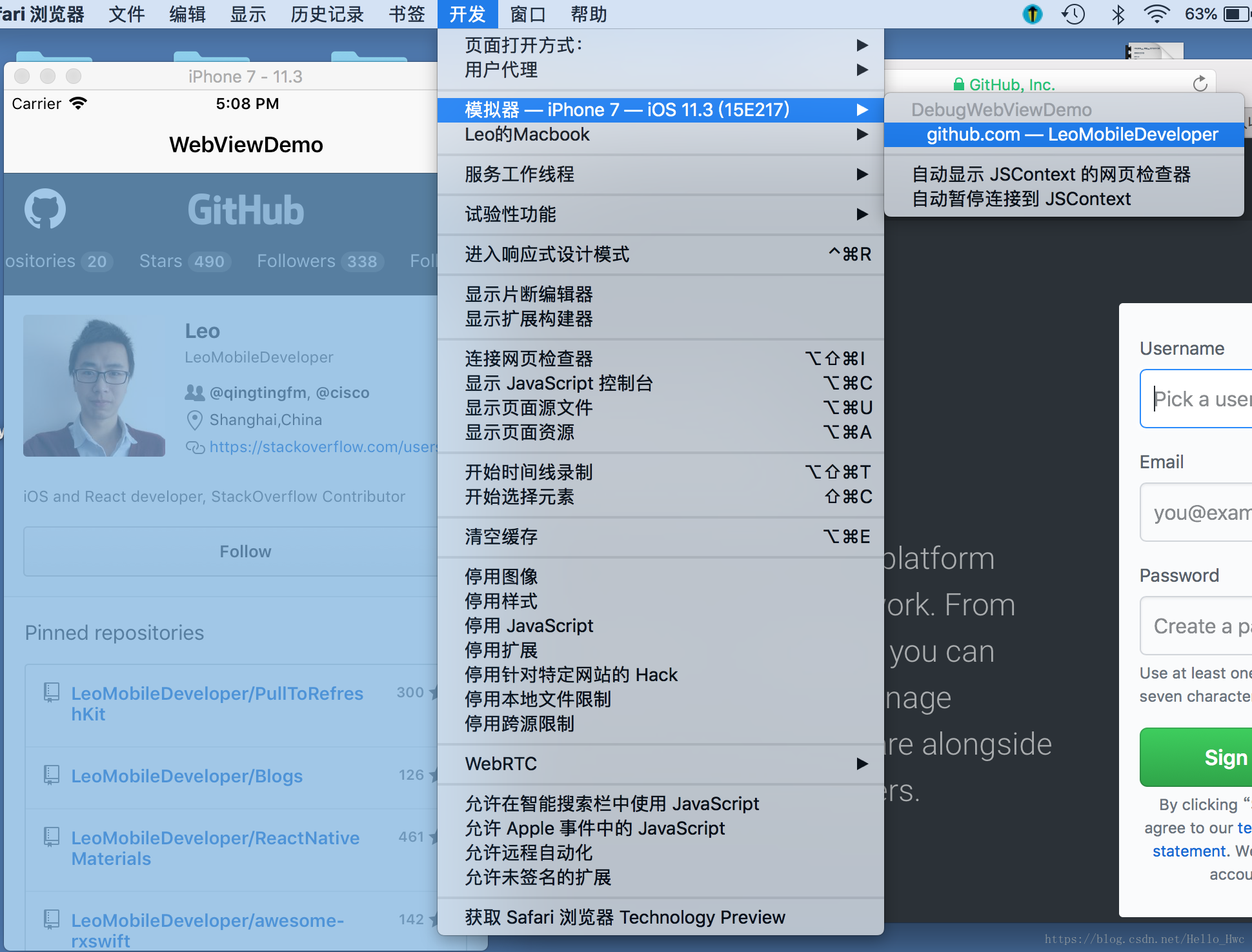 然后,就可以通过safari调试这个网页了