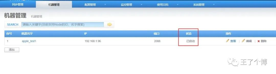 查看“机器管理-Node管理”页面,对应的节点状态,如果变为了已启动,代表已经正常启动