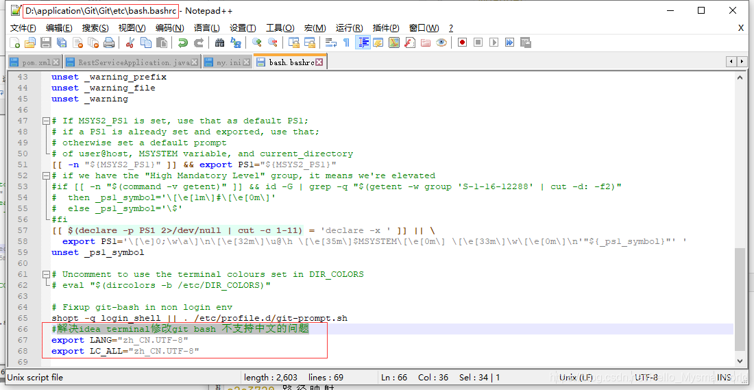 解决idea terminal修改git bash 不支持中文的问题