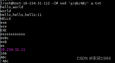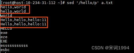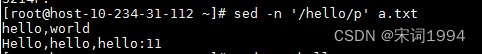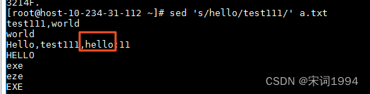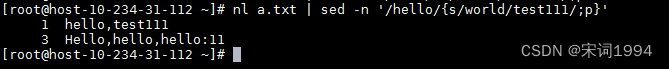 还可以组合参数,先找出hello这行,然后将world替换成test111