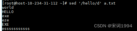 3)用d参数查找并删除,比如删除2-5行 或者 删除带hello的行