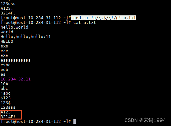 利用 sed 将 regular_express.txt 内每一行结尾若为 . 则换成 !