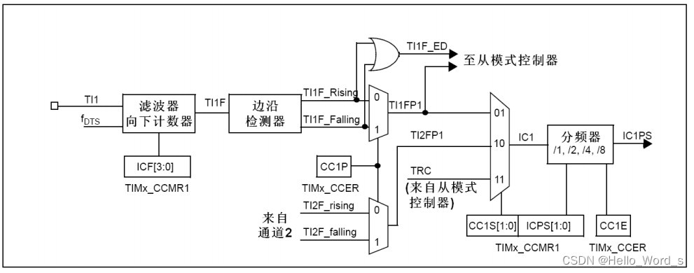 把TI1作为输入捕获通道,把捕获到的电平映射到内部的两个通道中